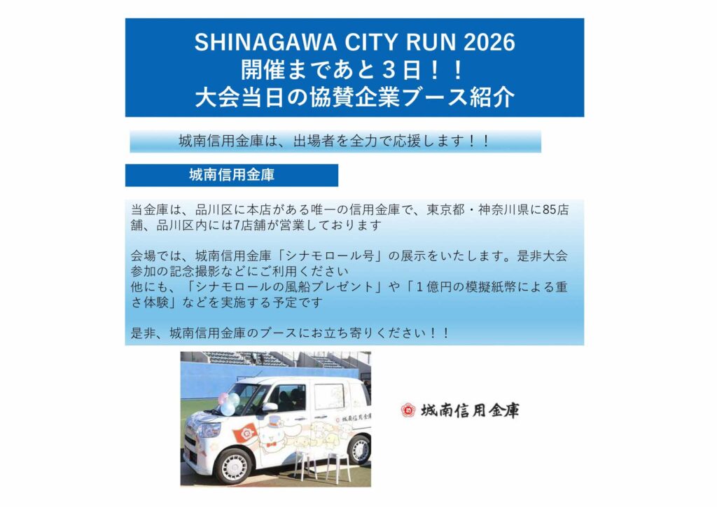 ・城南信用金庫 ▶ シナモロール号の展示、風船・ノベルティの配布、一億円規模紙幣の展示