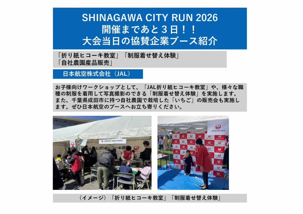 ・日本航空株式会社 ▶ 「折り紙ヒコーキ教室」や「制服着せ替え体験」などのワークショップ、物販