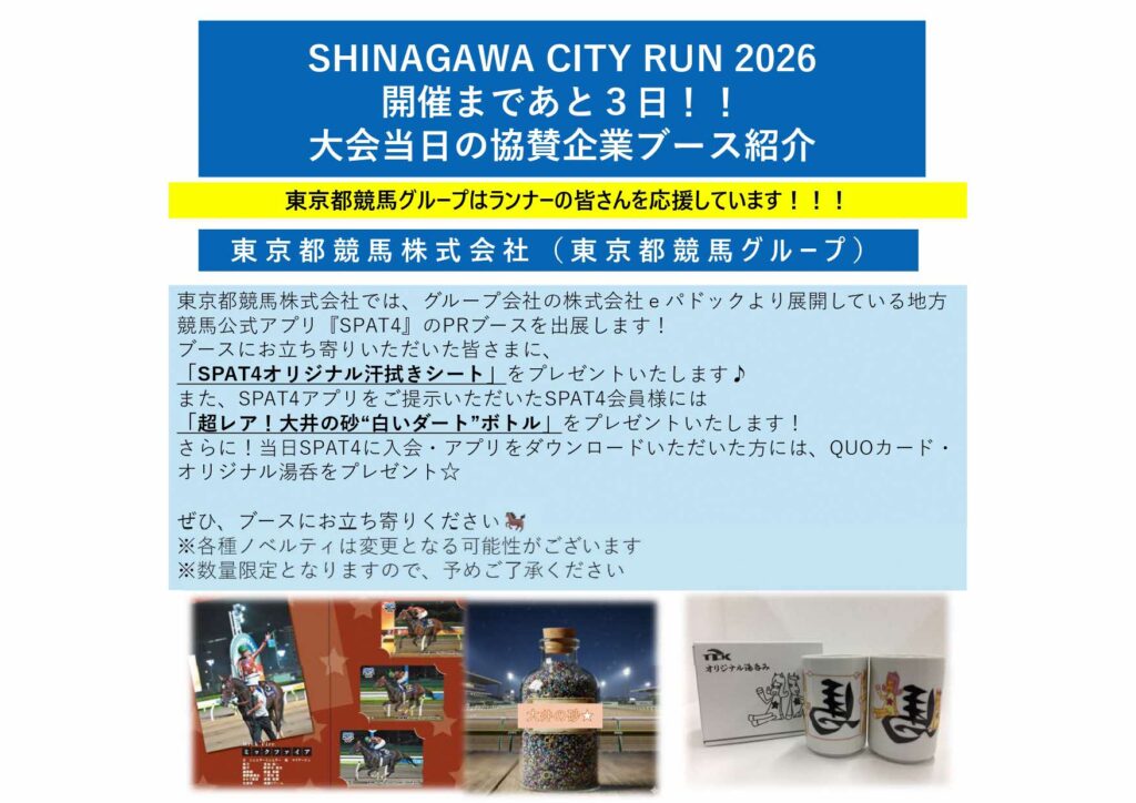 ・東京都競馬株式会社 ▶ 事業PR、オリジナル汗拭きシートの配布、指定のアプリダウンロードでオリジナル湯呑等のプレゼント